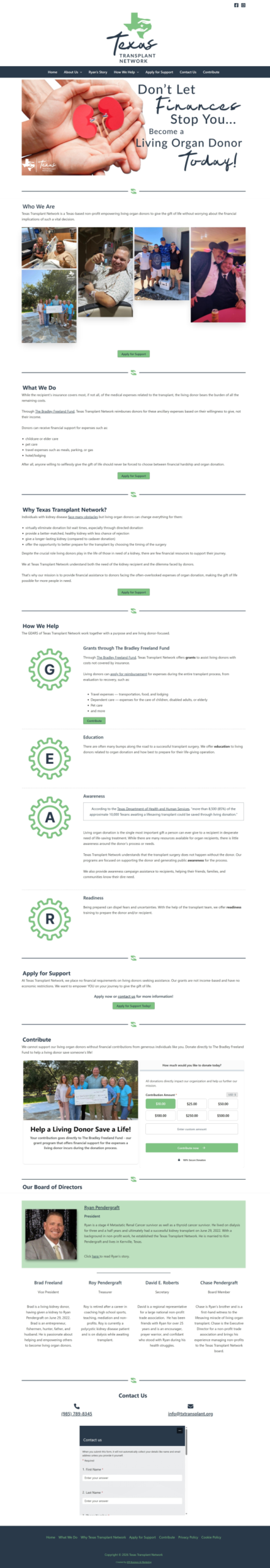 Created website to promote organization and enable fundraising campaigns. Put a special emphasis on the founder’s unique, personal kidney transplant journey and showcased the organization’s caring and focused mission to help others give the gift of life.